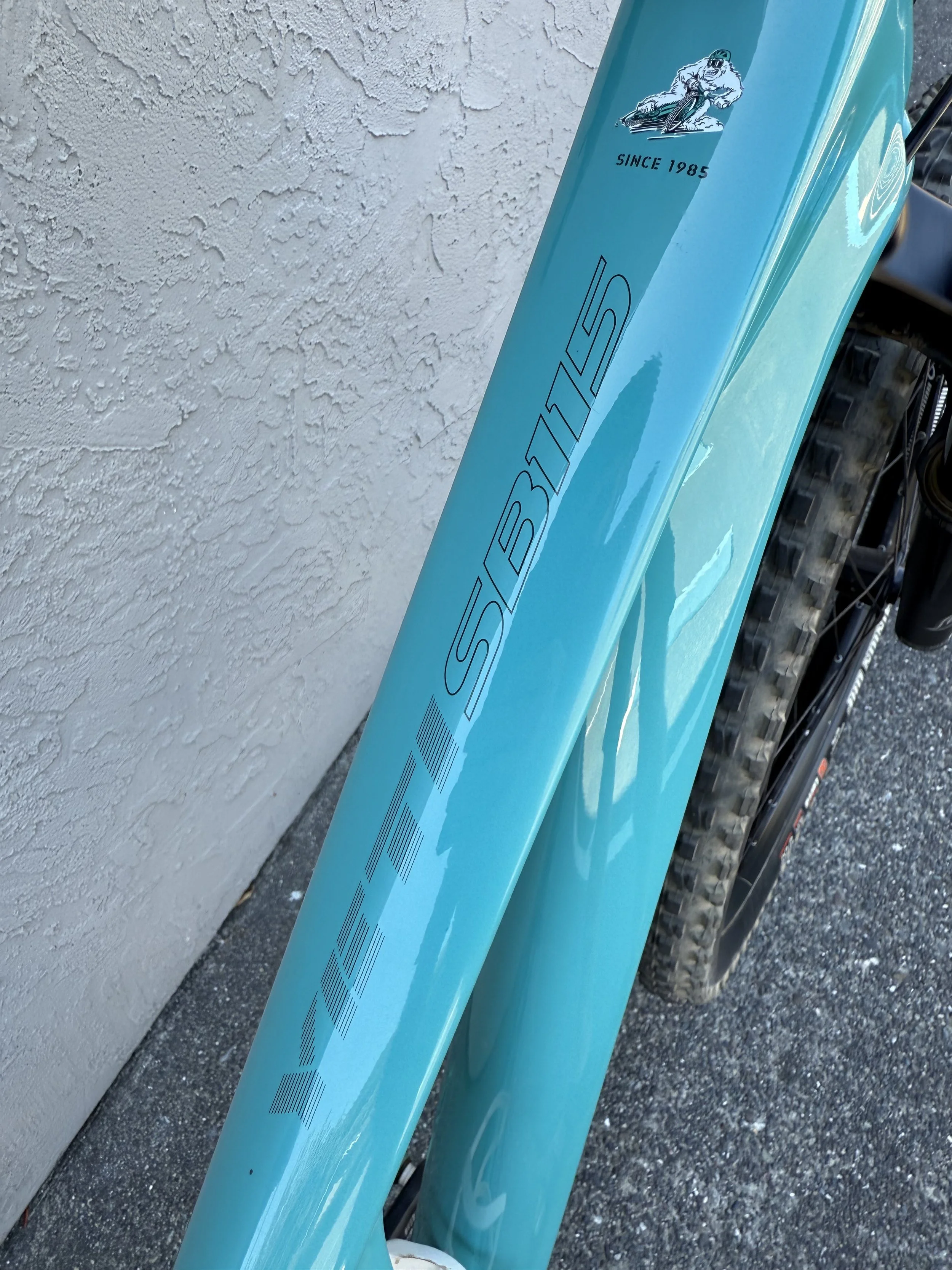 2023 Yeti SB115 C1 in size Medium! This bike will fit riders between 5'5 - 5'11 well. This is the stock C1 build with an upgraded DT Swiss E532 wheelset.