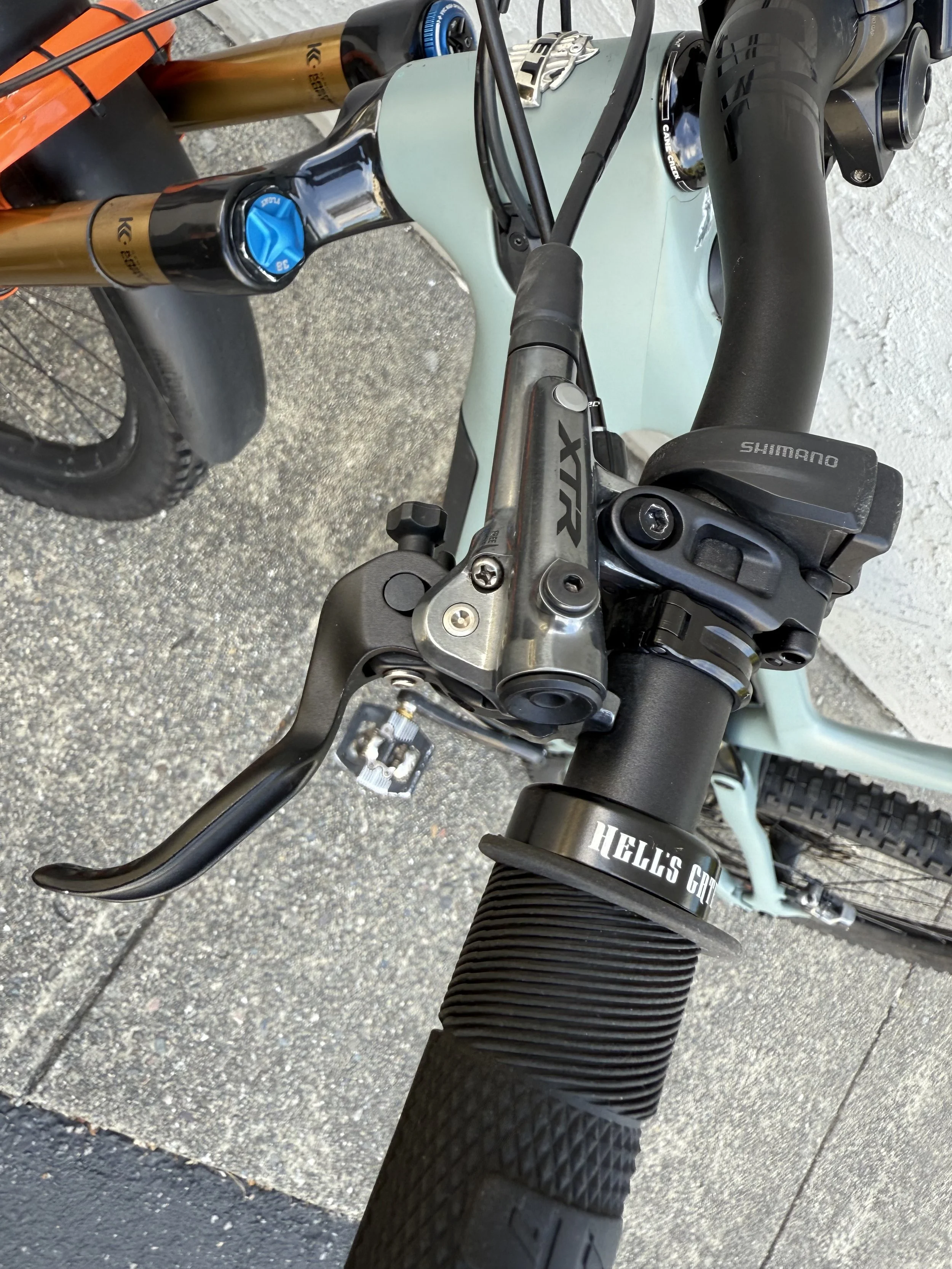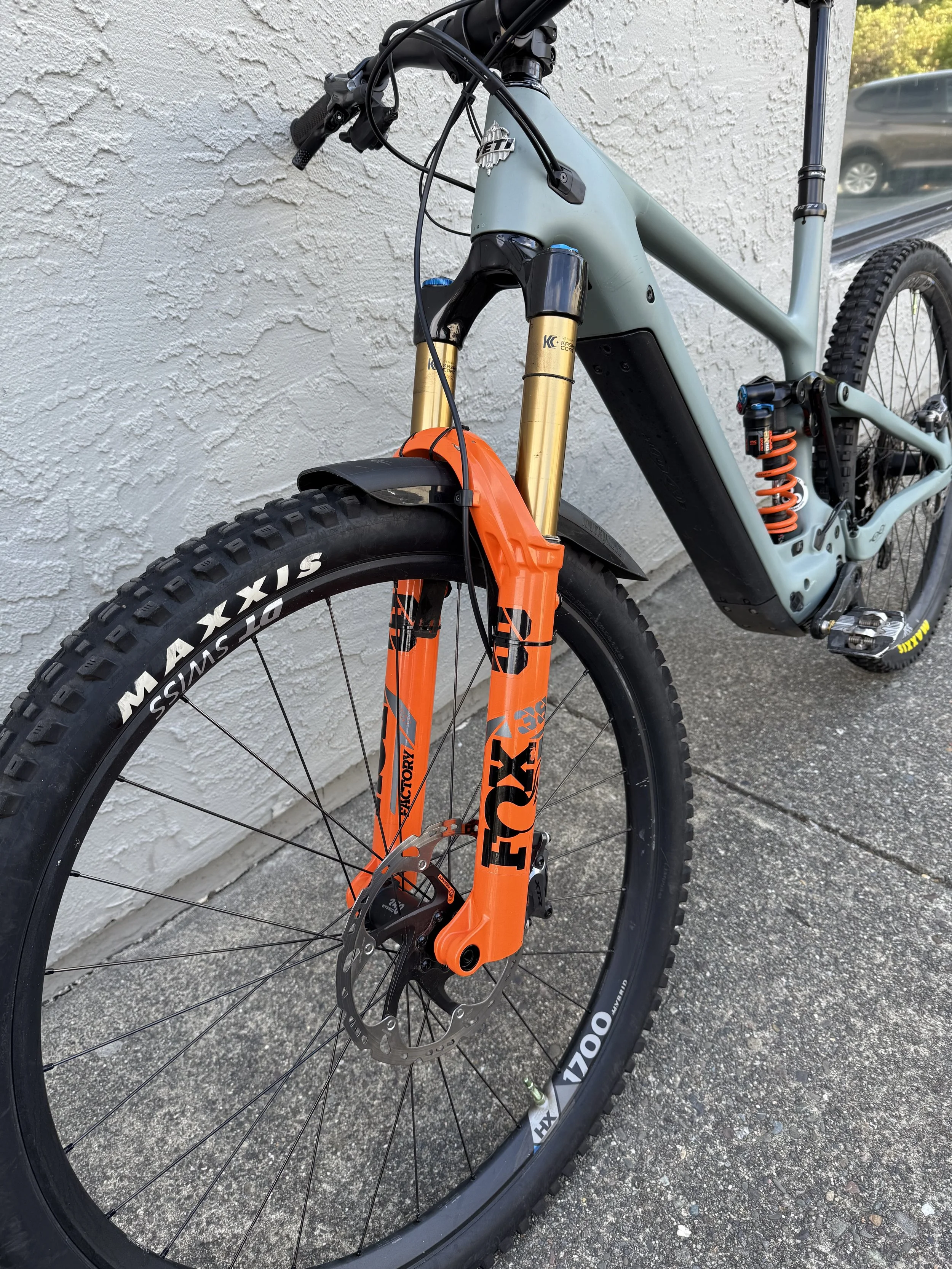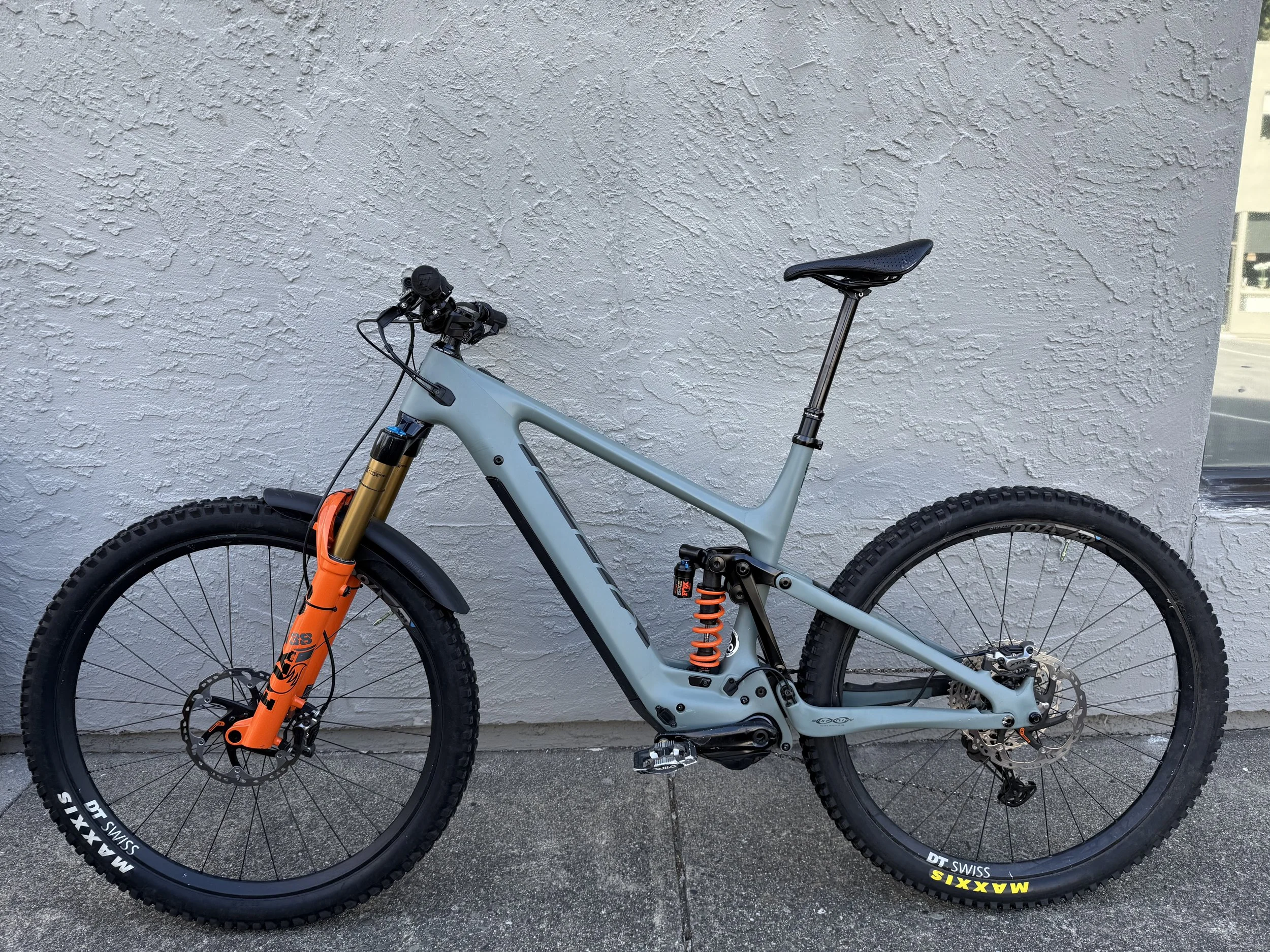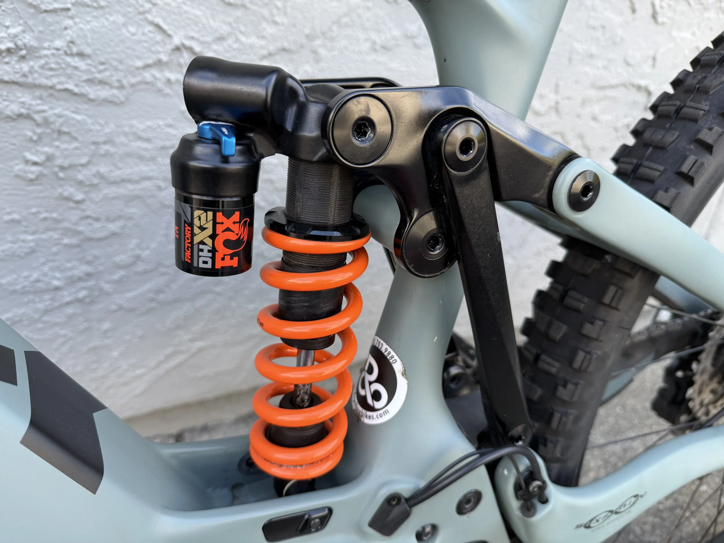 This is the T2 Turq model that retails for $10,800 but has some significant upgrades including XTR brakes with new 203 rotors, XTR shifter with an XT derailleur and XTR chain, Fox Factory DHX2 coil shock in the rear!