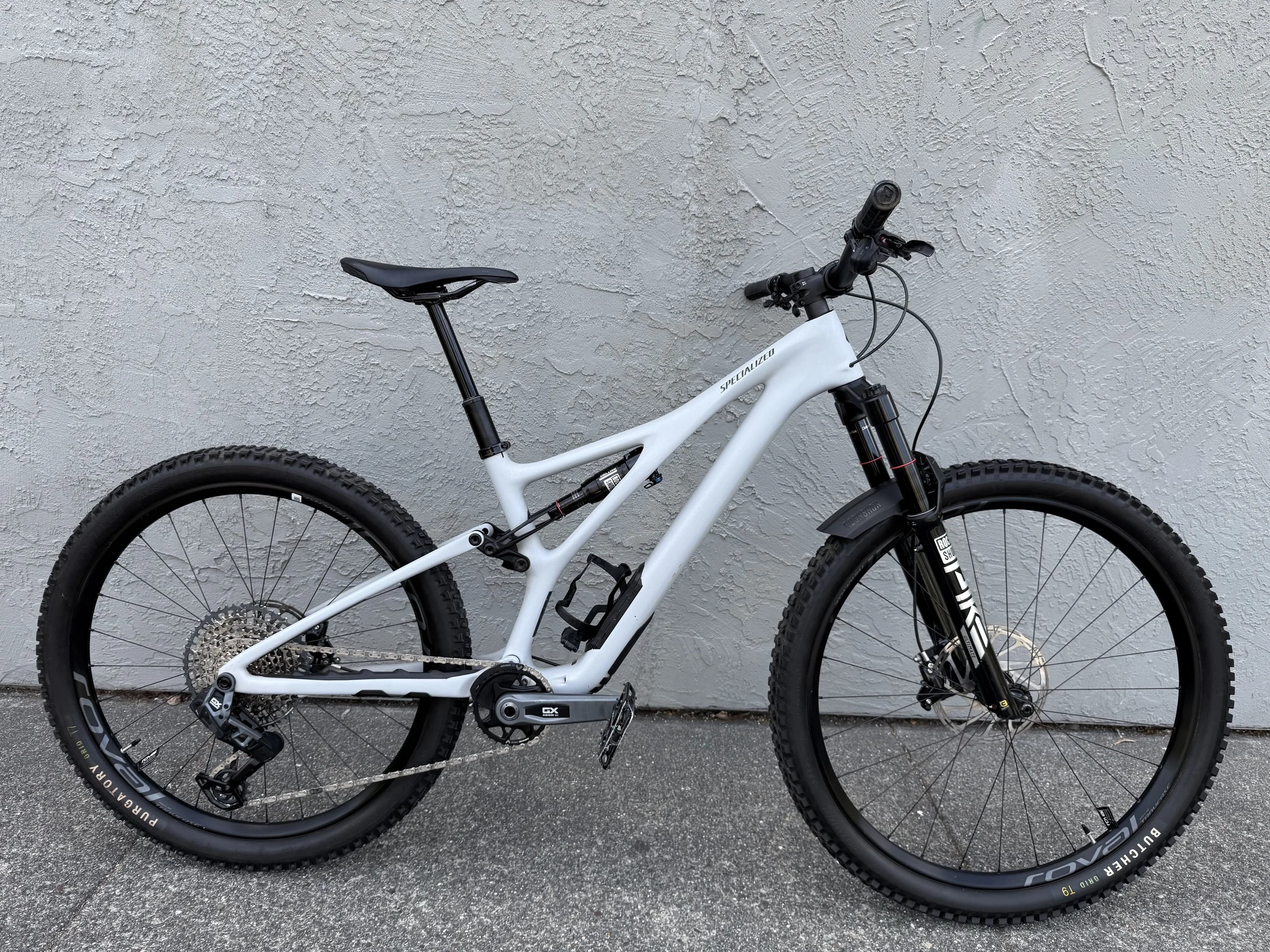 2024 Specialized Stumpjumper LTD T-Type. Size is Medium. The Stumpjumper is one of our go to trail bikes. It ride’s well on everything. This Stumpjumper is the LTD model and is built up with an electronic GX AXS drivetrain, RockShox Pike Ultimate fork and Deluxe Ultimate shock, and a bomber Roval Traverse 29/27.5 Alloy wheelset.
